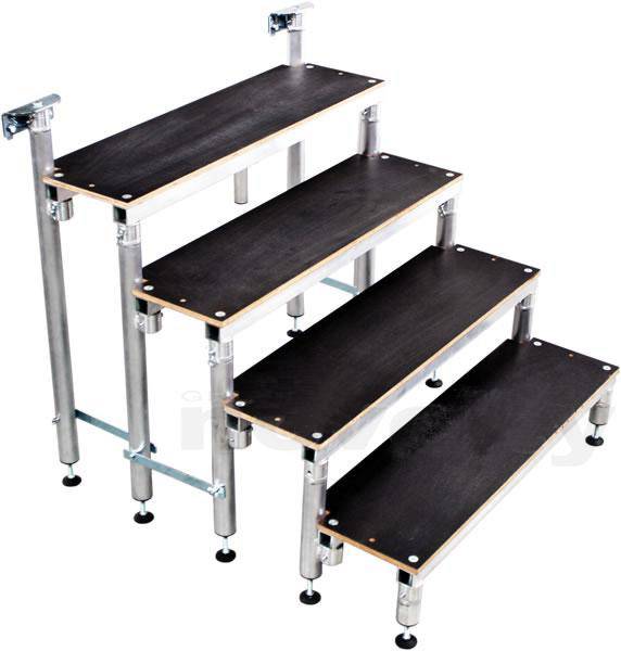 Nous disposons de tous ce qu'il vous faut pour vos besoins scéniques (escaliers, garde corps, jupe et moquette, fond de scène, pupitre...).