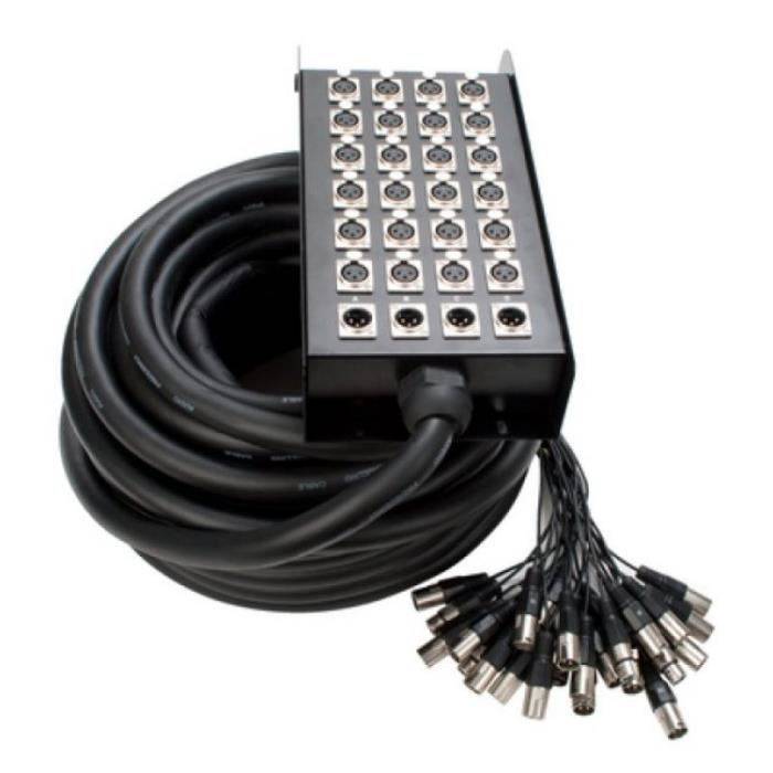 Ce multipaire audio dispose de 24 paires en entrée et 4 en sortie. D'une longueur de 30 mètres il est idéal pour des scènes moyennes situées à plus de 20 mètres de distance de la régie.