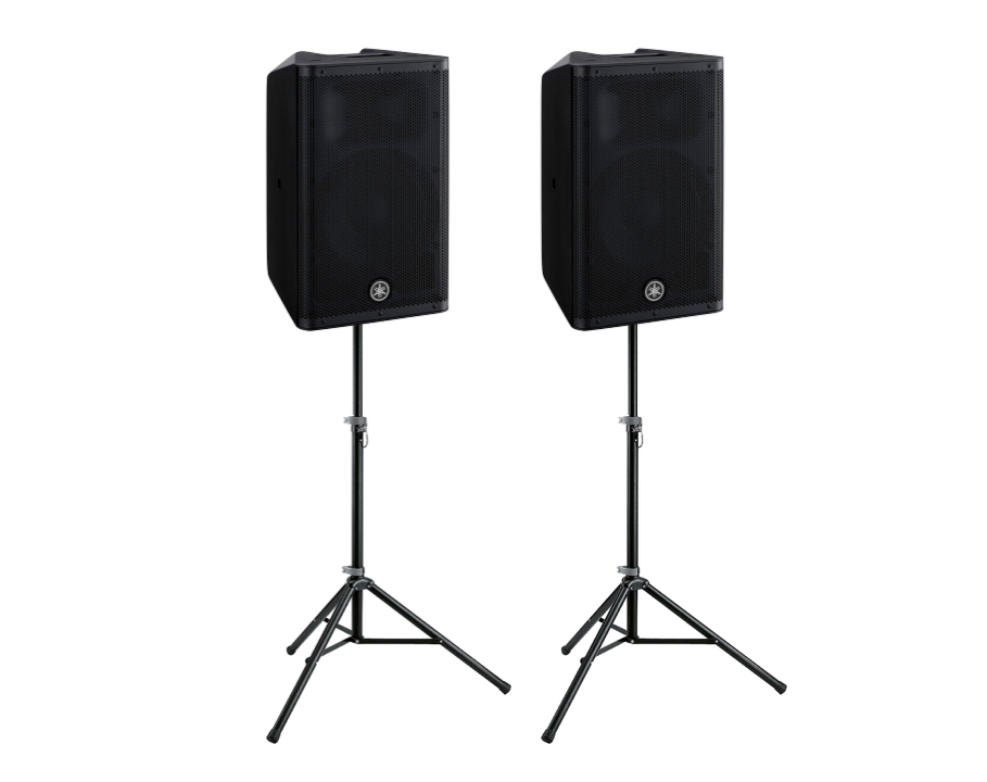 Système son préamplifié composé de 2 Yamaha DXR15 et de 2 pieds de levage.